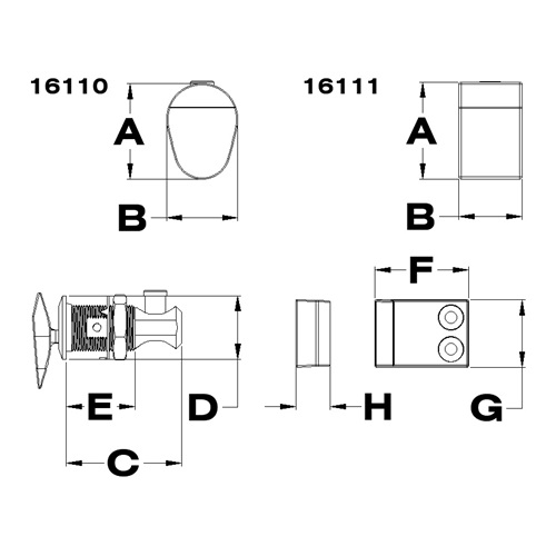 | 16111 | 1-7/16" | 15/16" | 1-11/16" | 15/16" | 1" | 1-3/8" | 1" | 1/2" | 3/4" |